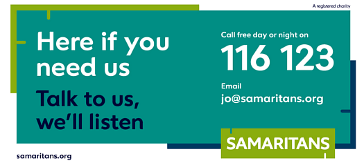 Samaritans are available day or night on 116 123 or perhaps, you’d prefer to text as sometimes typing can be more comfortable than talking. Details of how this works can be found here.